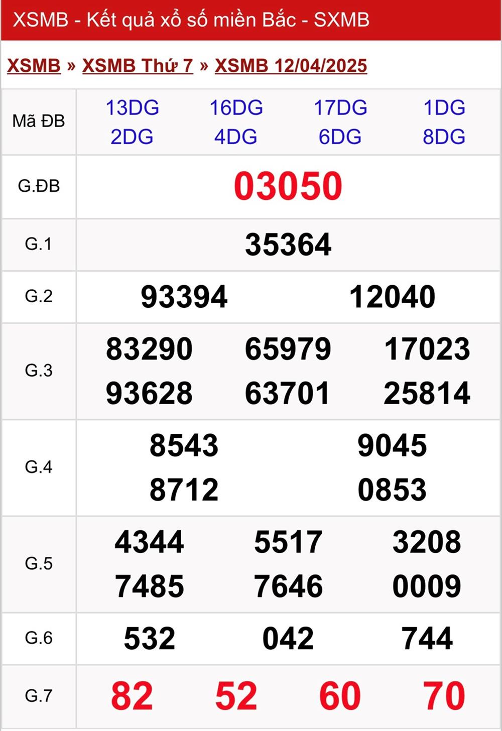 XSMB 13/4, kết quả xổ số miền Bắc ngày 13/4/2025.