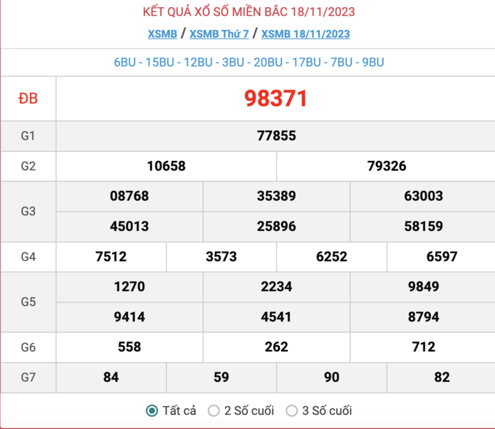 XSMB thứ 7, kết quả xổ số miền Bắc ngày 18/11/2023