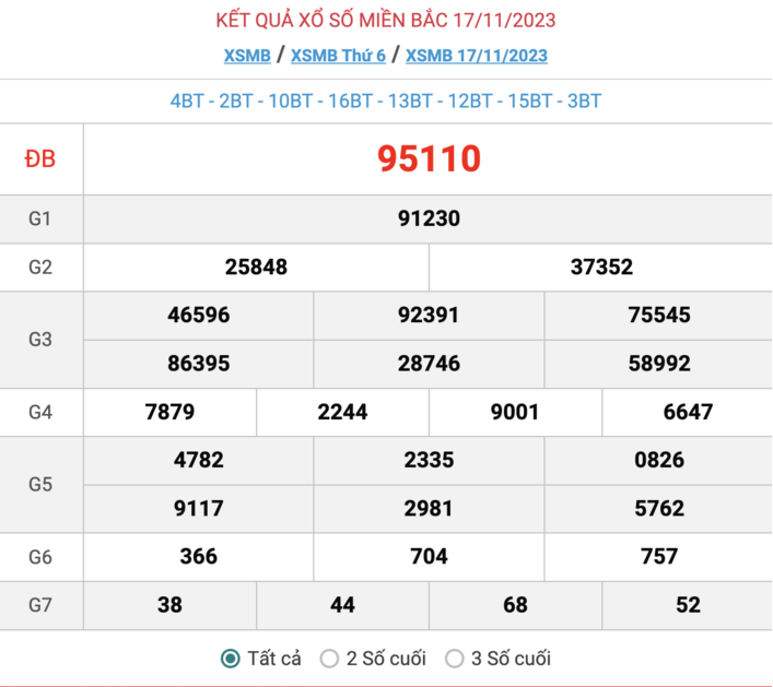 XSMB thứ 6, kết quả xổ số miền Bắc ngày 17/11/2023