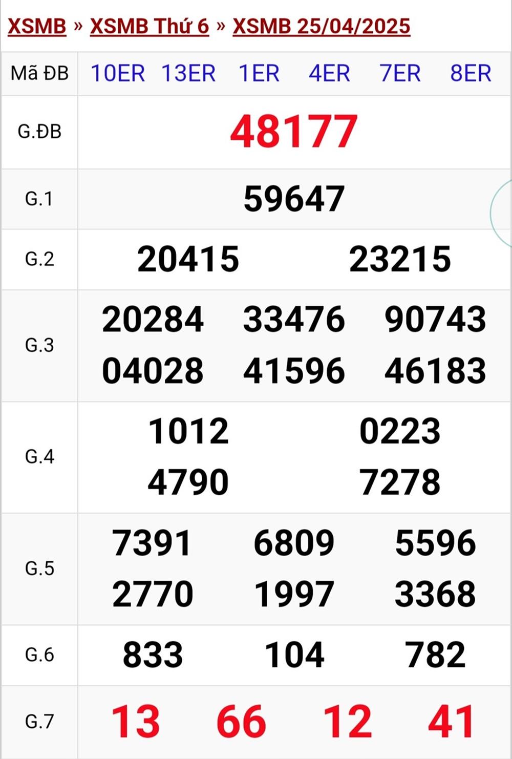 XSMB 25/4, kết quả xổ số miền Bắc ngày 25/4/2025