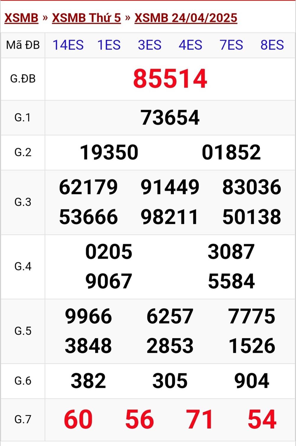 XSMB 24/4, kết quả xổ số miền Bắc ngày 24/4/2025
