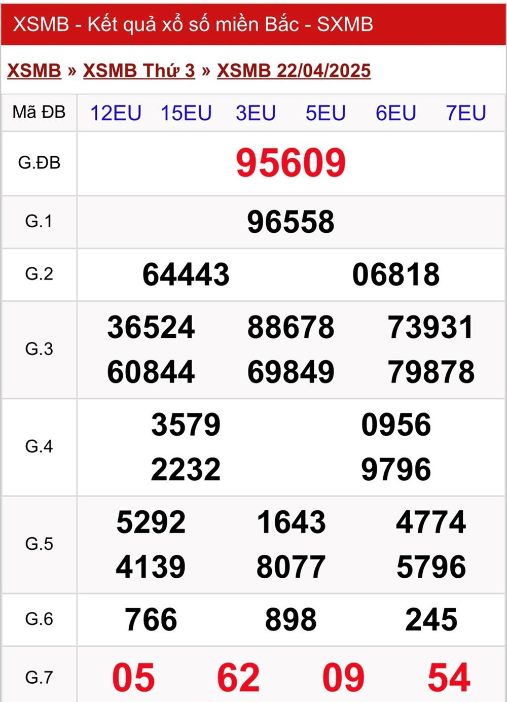XSMB 22/4, kết quả xổ số miền Bắc ngày 22/4/2025