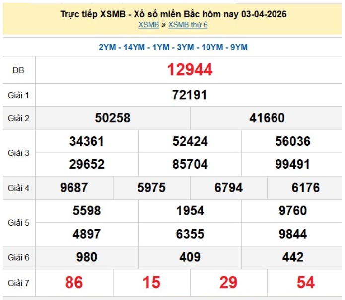 Kết quả xổ số miền Bắc hôm nay (XSMB) ngày 6/4/2026 được cập nhật nhanh chóng ngay sau thời điểm quay số lúc 18h15, mang đến thông tin chính xác cho người chơi trên cả nước.