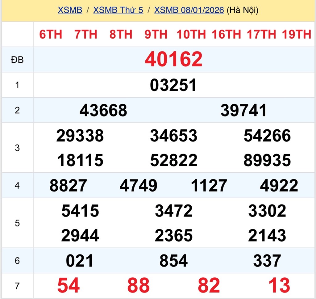 Trực Tiếp kết quả xổ số miền Bắc 8/1/2026 - XSMB 8/1
