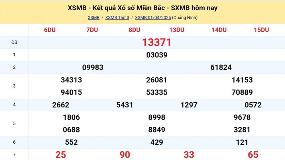 Kết quả xổ số miền Bắc ngày 8/4/2025 -KQXSMB 8/4