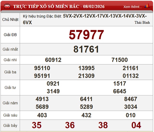 Trực Tiếp kết quả xổ số miền Bắc 12/2/2026 - XSMB 12/2