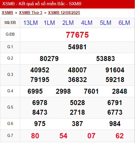 - XSMB 13/8/2025. Xem lại KQXSMB ngày 13/8/2025