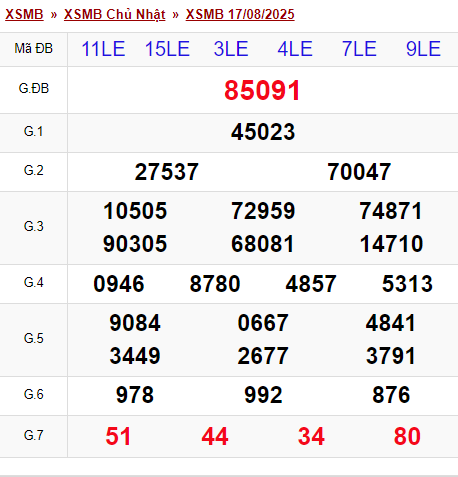 Kết quả xổ số miền Bắc hôm nay ngày 17/8/2025