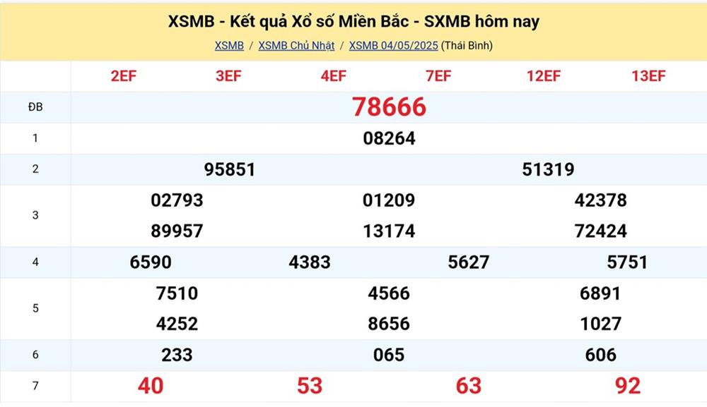 XSMB 4/5/2025. Xem lại KQXSMB ngày 4/5/2025