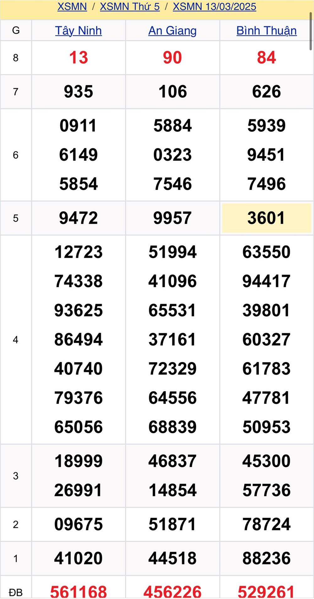 XSMN 13/3, kết quả xổ số miền Nam ngày 13/3/2025.