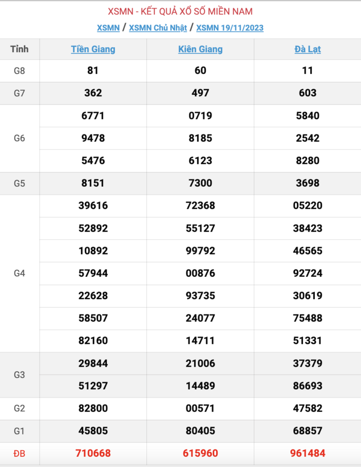 - Kết quả XSMN ngày 19/11/2023