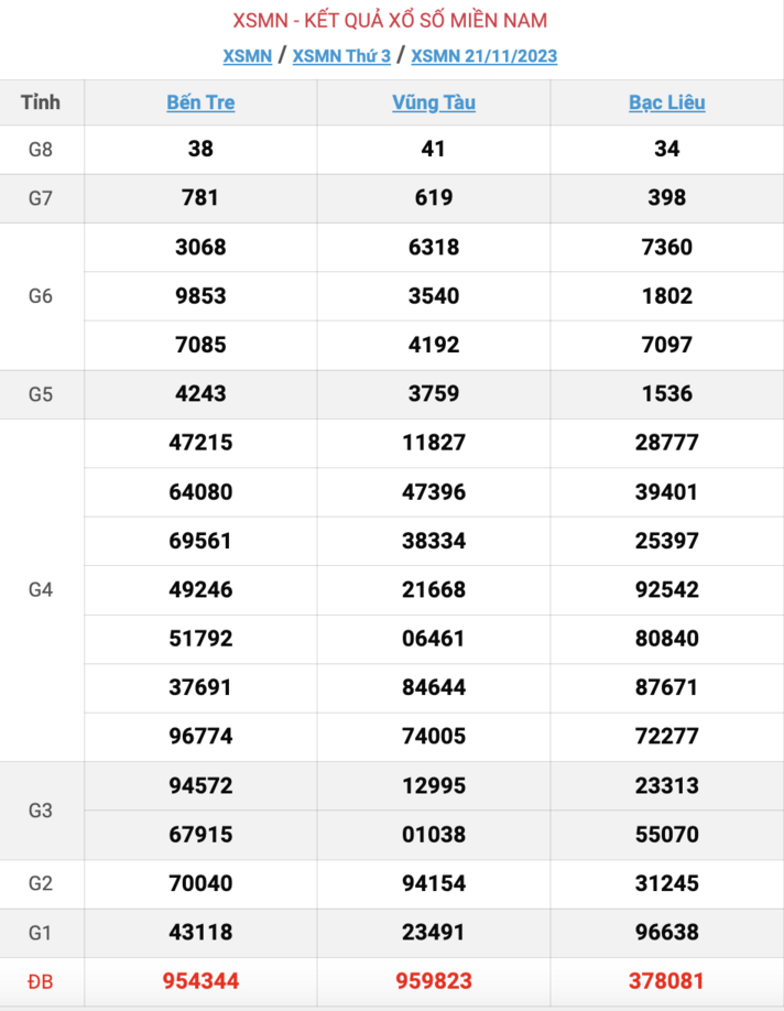 Kết quả XSMN ngày 21/11/2023
