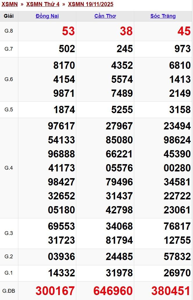 Kết quả xổ số miền Nam ngày 19/11/2025