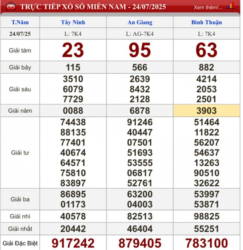 XSMN 24/7/2025. Xem lại KQXSMN ngày 24/7/2025