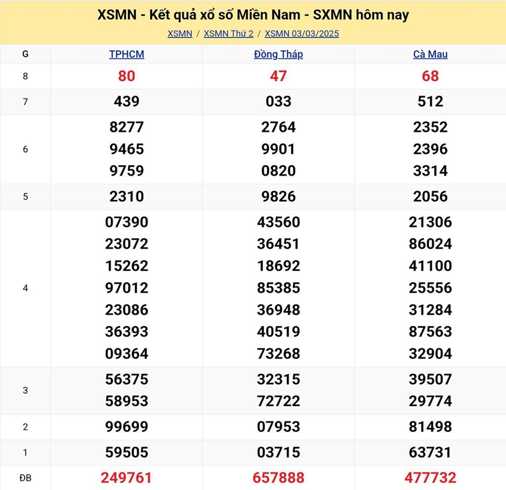Trực tiếp Kết quả xổ số miền Nam hôm nay 6/3/2025, kết quả xổ số miền Nam hôm nay 6/3, Kết quả xổ số hôm nay thứ Năm ngày 6/3/2025.