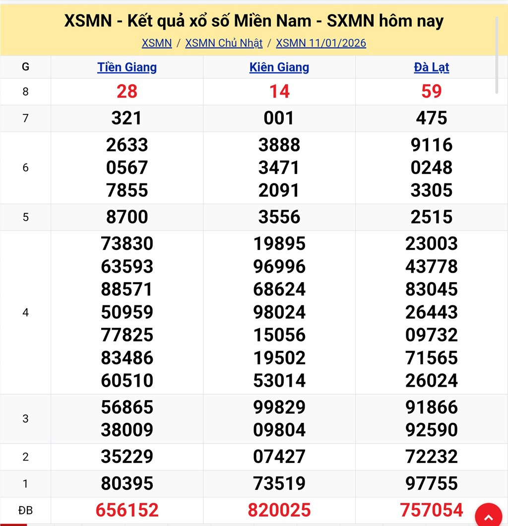 Kết quả xổ số miền Nam ngày 11/1/2026
