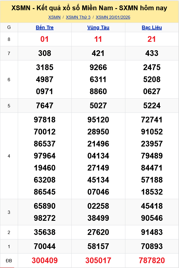 Kết quả xổ số miền Nam ngày 20/1/2026