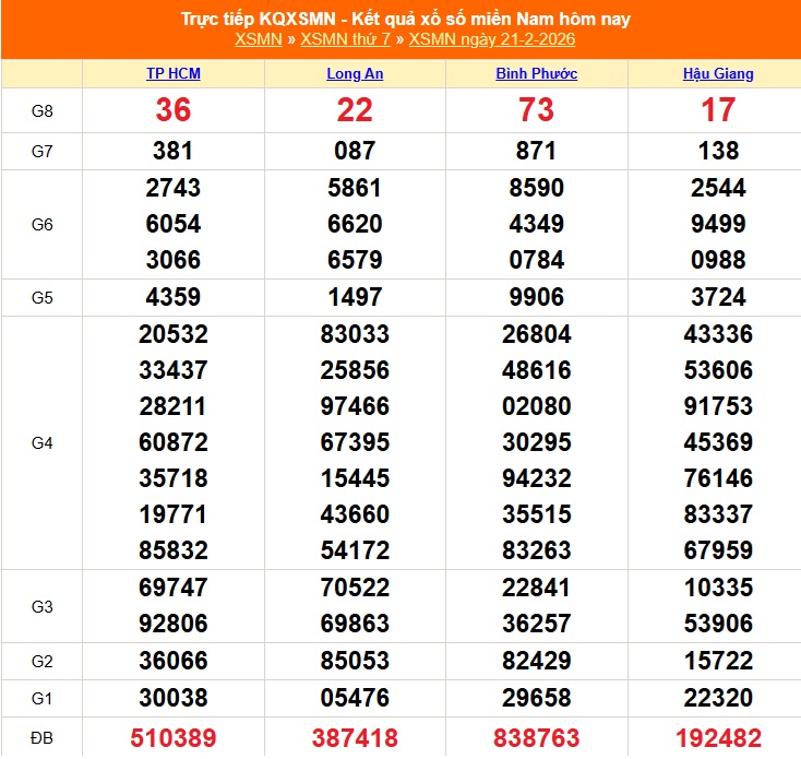 Kết quả xổ số miền Nam ngày 21/2/2026
