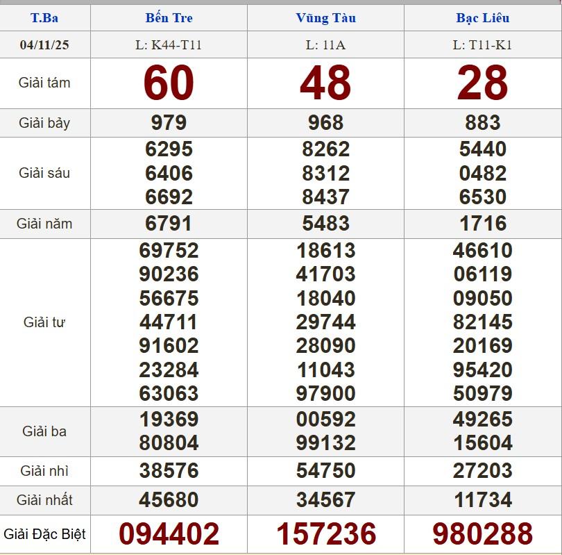 Kết quả xổ số miền Nam ngày 4/11/2025
