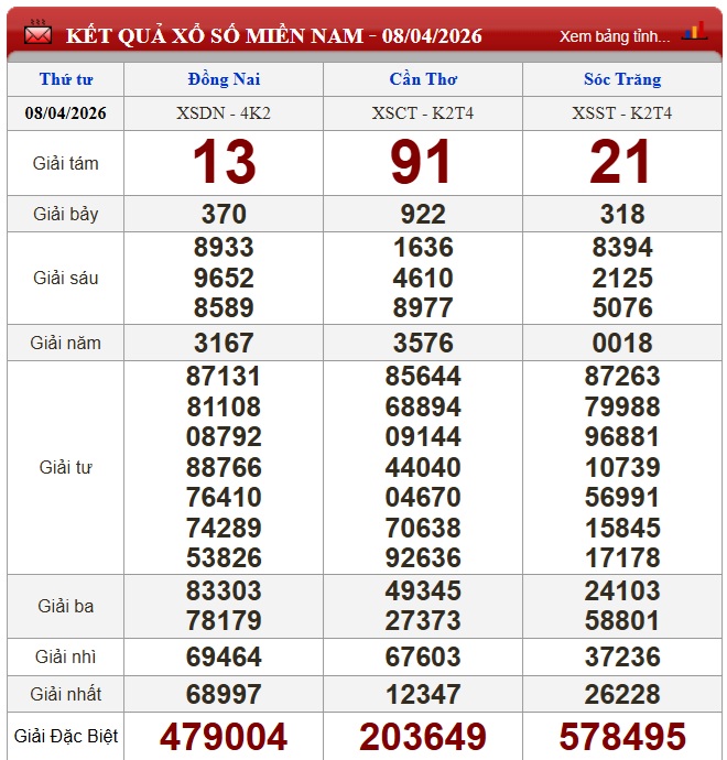 Kết quả xổ số miền Nam ngày 8/4/2026