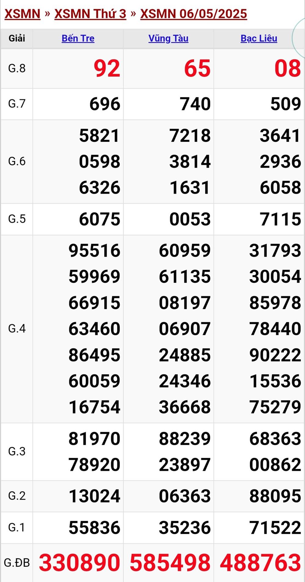 XSMN 6/5/2025. Xem lại KQXSMN ngày 6/5/2025
