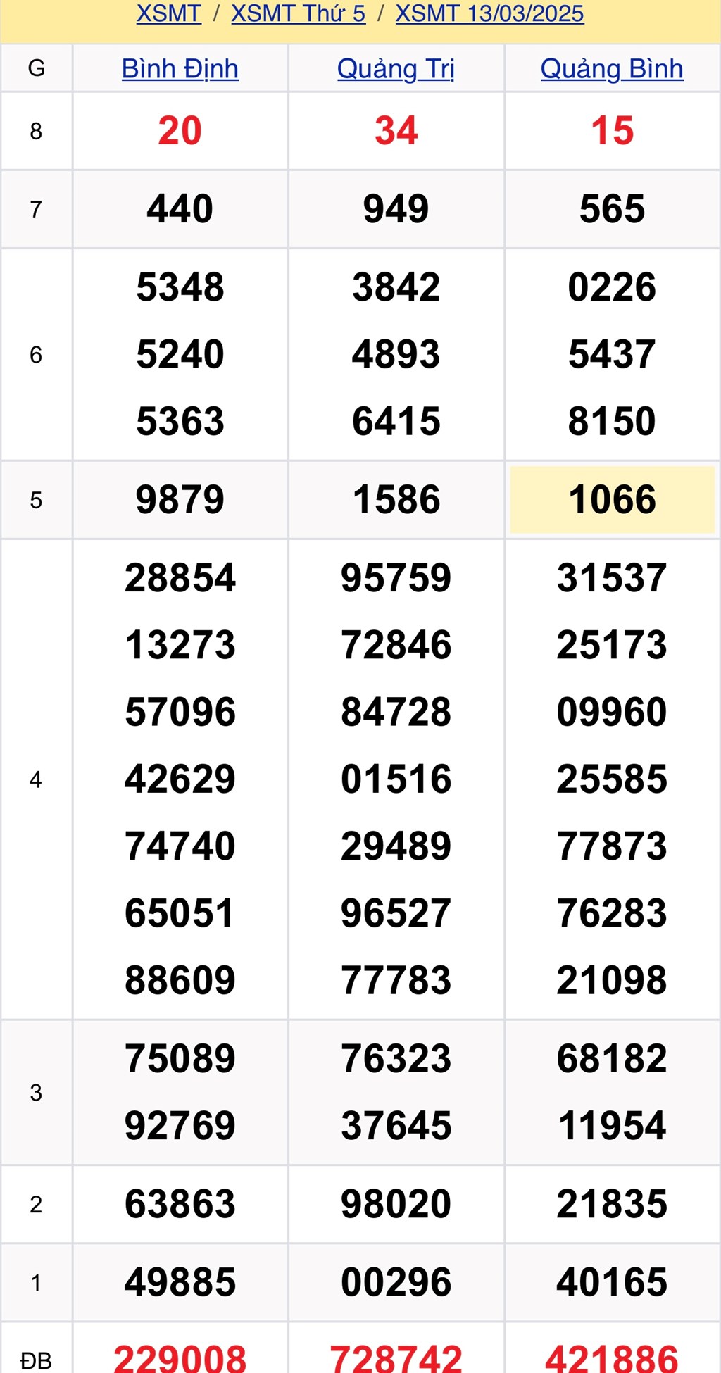 - Xổ số miền Trung thứ năm được mở thưởng tại Quảng Trị, Quảng Bình, Bình Định.