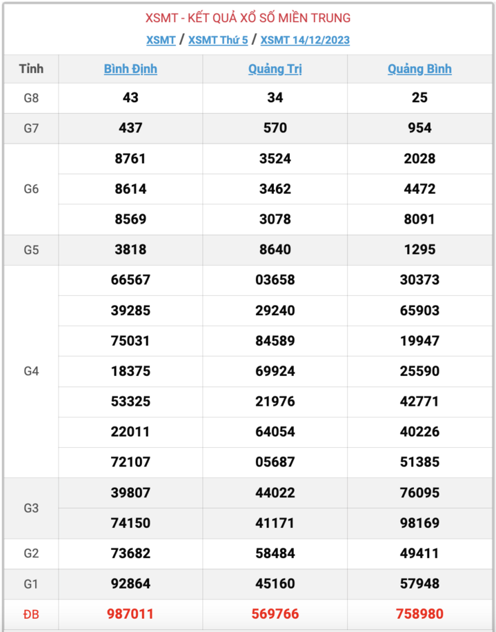 XSMT thứ 5, kết quả xổ số miền Trung ngày 14/12/2023