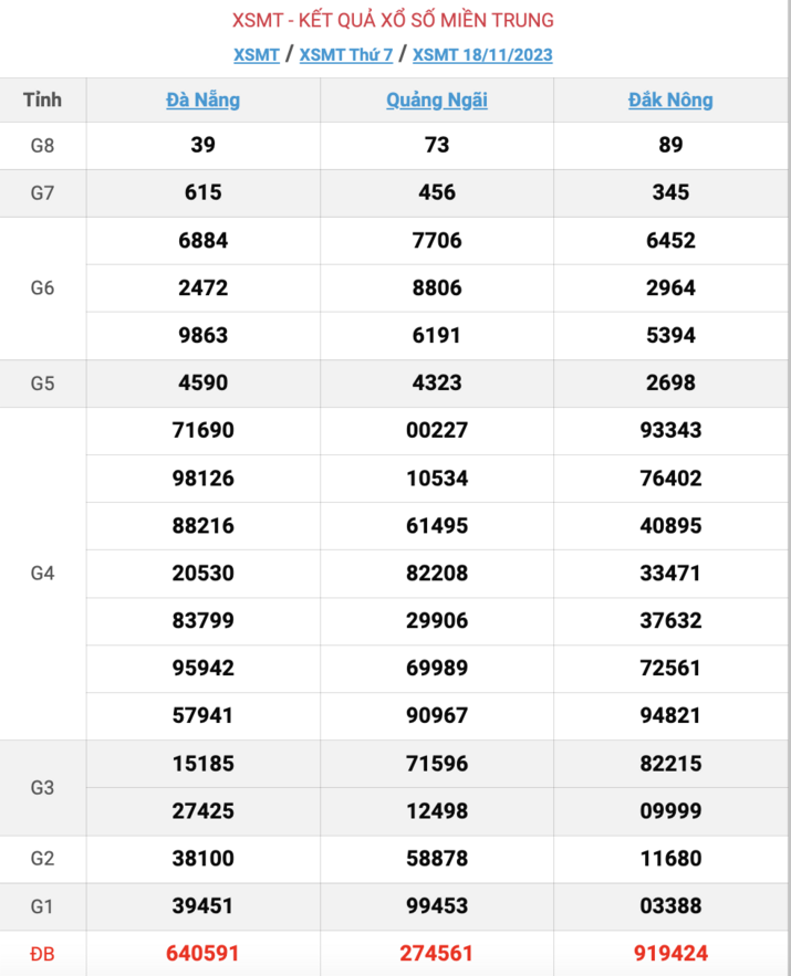 XSMT thứ 7, kết quả xổ số miền Trung ngày 18/11/2023