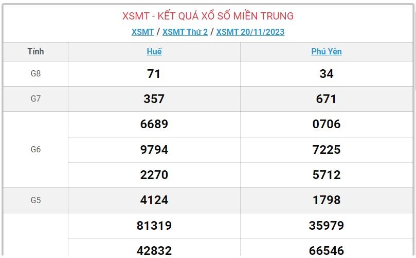 - Kết quả XSMT ngày 20/11/2023