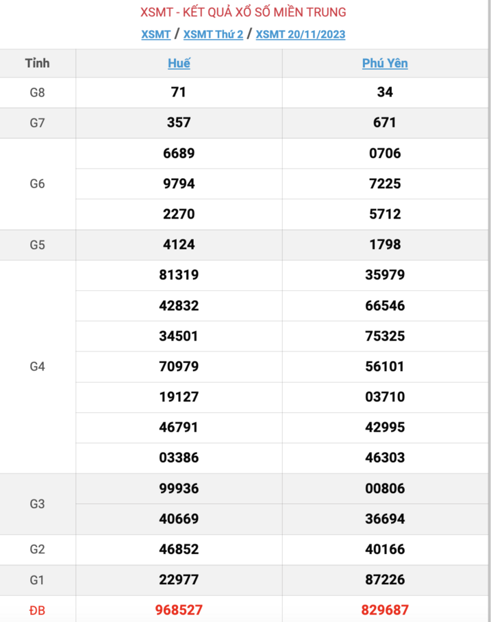 Kết quả XSMT ngày 20/11/2023