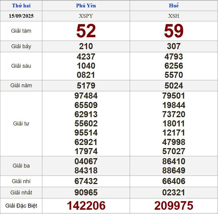 - Thứ Hai: Xổ số miền Trung (XSMT) được quay số tại 2 đài Phú Yên (XSPY) và Thừa Thiên Huế (XSTTH).