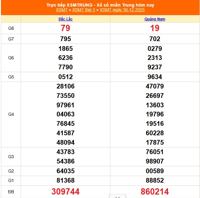 Kết quả xổ số miền Trung ngày 30/12/2025