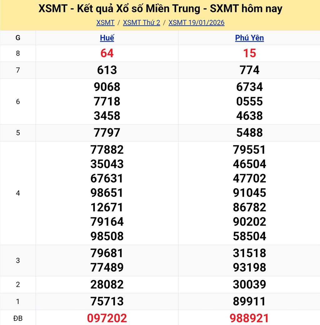 Kết quả xổ số miền Trung ngày 19/1/2026