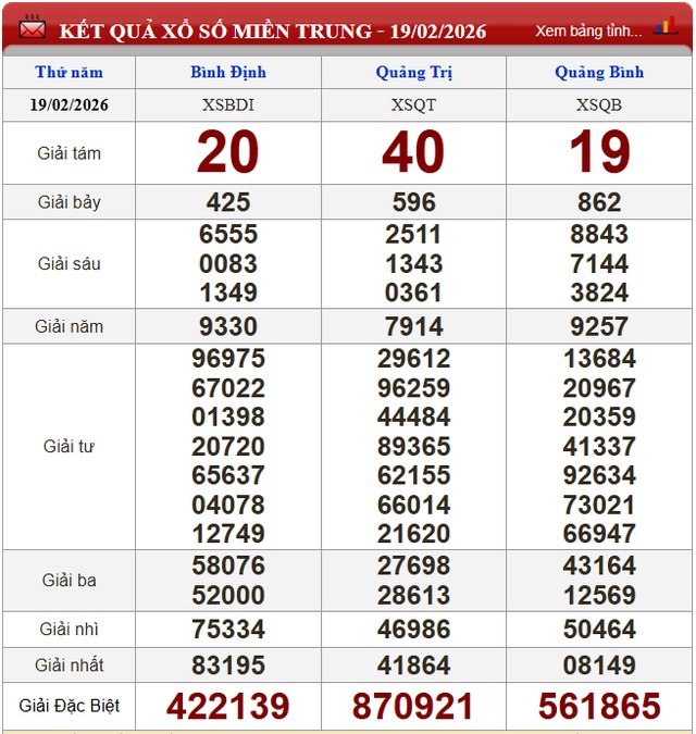 Kết quả xổ số miền Trung ngày 19/2/2026