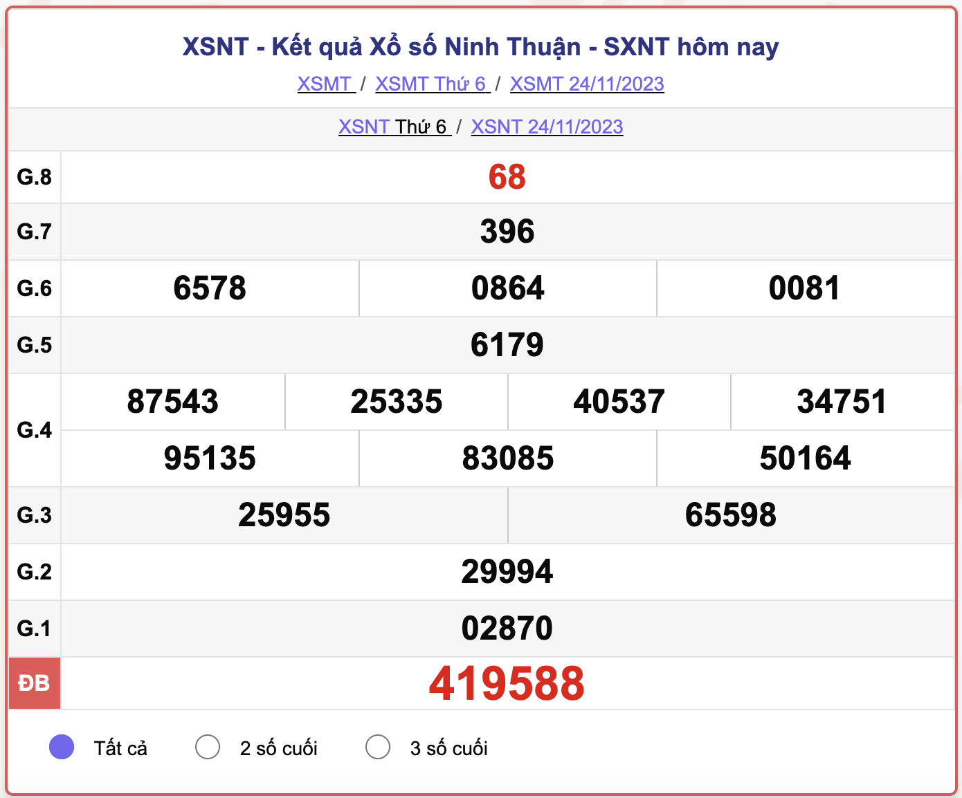 - Kết quả XSNT ngày 24/11/2023