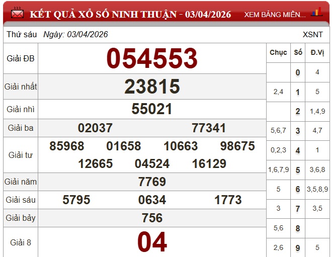 Trực tiếp Kết quả xổ số Ninh Thuận hôm nay - Kết quả XSNT 10/4 - XSNT hôm nay Thứ Sáu ngày 10/4/2026 - Xổ số Ninh Thuận hôm nay - Trực tiếp xổ số Ninh Thuận hôm nay