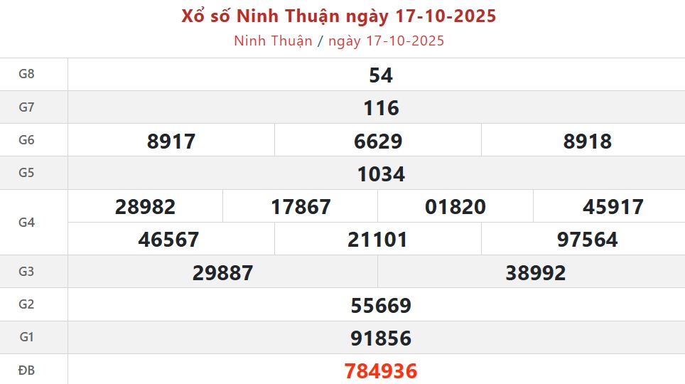 XSNT 17/10, Kết quả xổ số ninh thuận ngày 17/10/2025
