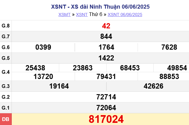 XSNT 6/6, kết quả xổ số Ninh Thuận hôm nay ngày 6/6/2025.