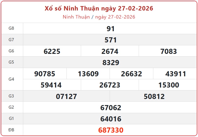 Kết quả xổ số Ninh Thuận ngày 27/2/2026