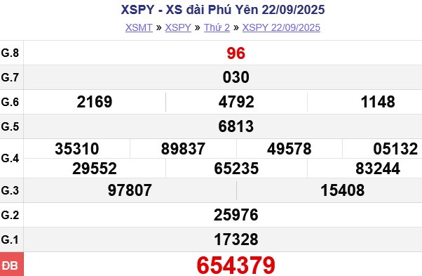 XSPY 20/10. Kết quả xổ số Phú Yên hôm nay ngày 20/10/2025 được quay thưởng vào lúc 17h15 bởi Công ty TNHH MTV Xổ số kiến thiết Phú Yên. Kết quả các giải thưởng của XSPY 20/10/2025 được công bố lần lượt từ giải giải nhất cho đến giải tám, cuối cùng là giải đặc biệt.