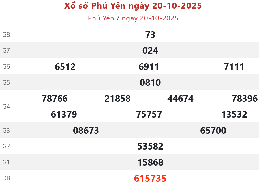 - XSPY 20/10, kết quả xổ số Phú Yên ngày 20/10/2025