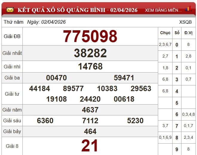 Kết quả xổ số Quảng Bình Thứ Năm ngày 2/4/2026