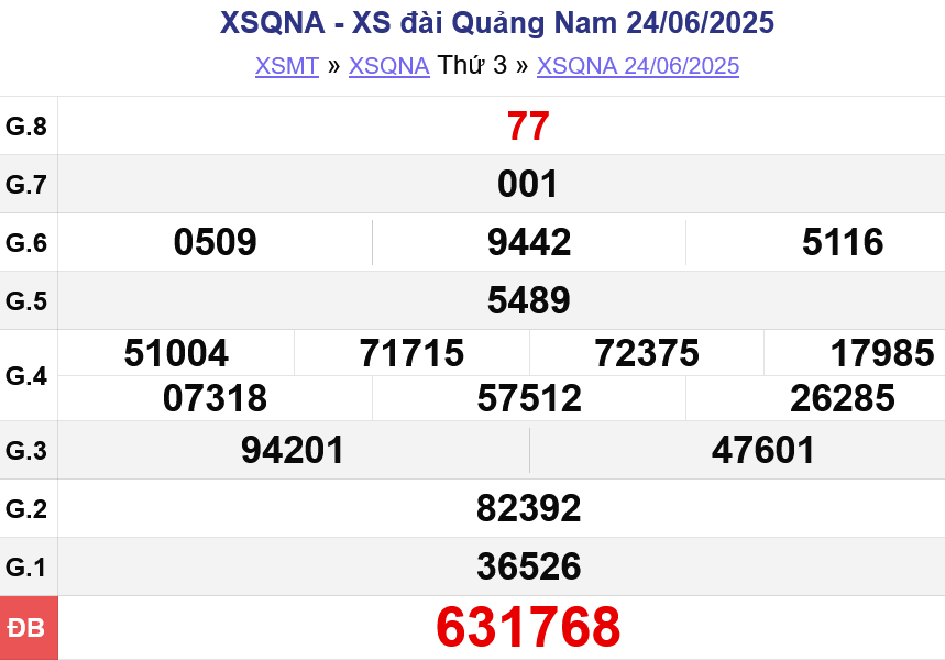 Trực tiếp Kết quả xổ số Quảng Nam hôm nay - Kết quả XSQNA 8/7- XSQNA hôm nay Thứ Ba ngày 8/7/2025