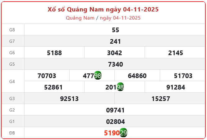 Theo dõi kết quả xổ số Quảng Nam hôm nay 18/11/2025 nhanh chóng và chính xác nhất để không bỏ lỡ thời gian nhận thưởng.