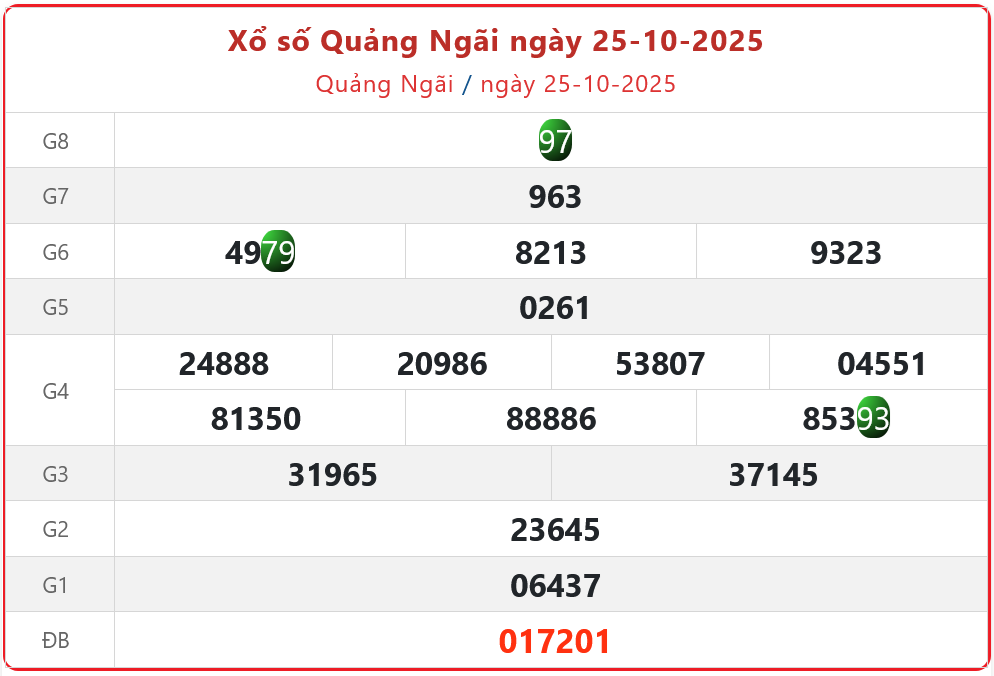 Theo dõi kết quả xổ số Quảng Ngãi hôm nay 15/11/2025 nhanh chóng và chính xác nhất để không bỏ lỡ thời gian nhận thưởng.
