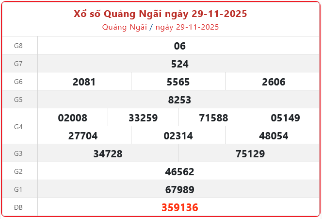 Theo dõi kết quả xổ số Quảng Ngãi hôm nay 13/12/2025 nhanh chóng và chính xác nhất để không bỏ lỡ thời gian nhận thưởng