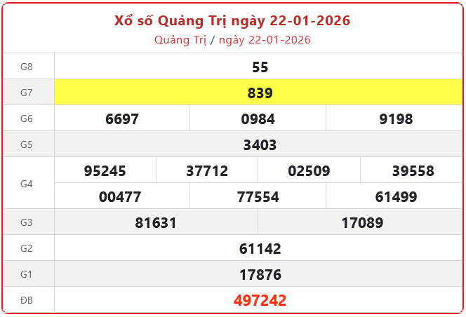 XSQT 22/1. XSQT thứ Năm. Trực tiếp KQXSQT ngày 22/1. Kết quả xổ số Quảng Trị hôm nay thứ Năm ngày 22/1/2026.