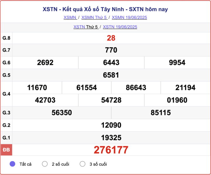 XSTN 19/6, kết quả xổ số Tây Ninh hôm nay 19/6/2025.