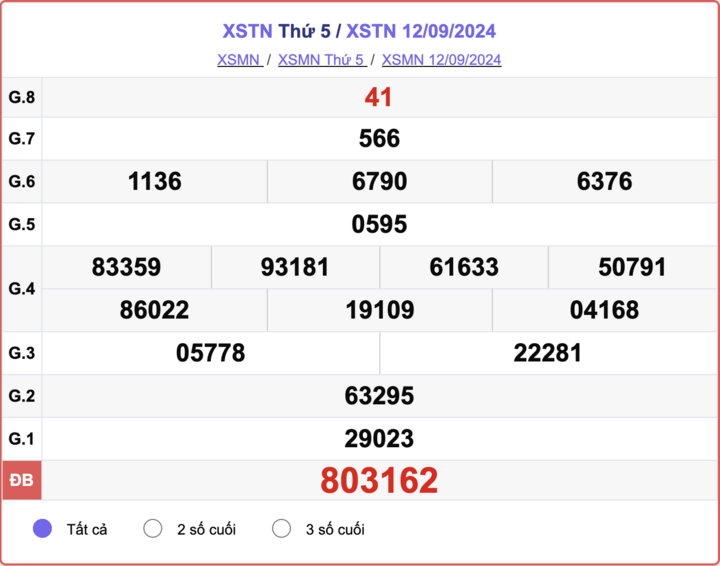 XSTN 26/9. Kết quả xổ số Tây Ninh hôm nay - XSTN thứ Năm ngày 26/9/2024 sẽ được cập nhật nhanh chóng và chính xác nhất trên phuongtruongan.vn. Kết quả các giải thưởng của XSTN ngày 26/9/2024 sẽ được công bố lần lượt từ giải tám cho đến giải nhất, cuối cùng là giải đặc biệt.