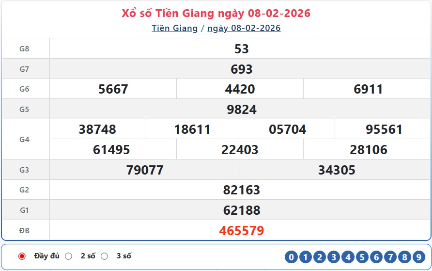 Theo dõi kết quả xổ số Tiền Giang hôm nay 8/2/2026 để cập nhật kết quả sớm nhất.